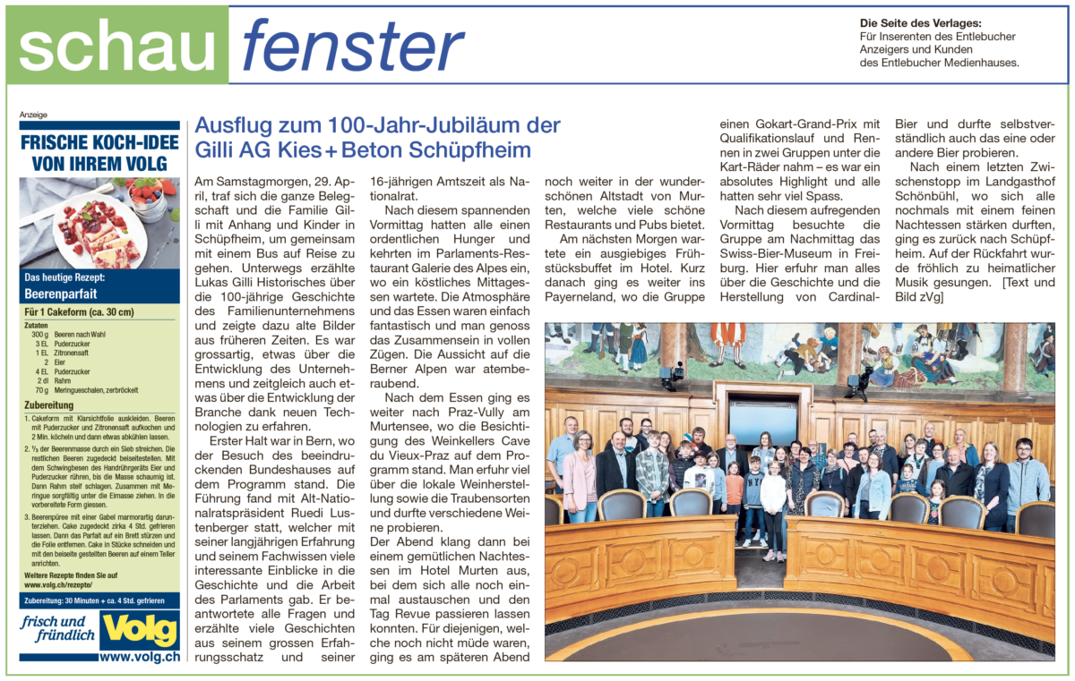 Die Gilli AG blickt heute auf eine 100-jährige Geschichte zurück. Wurde zu den Anfängen der Kies mit Schaufel und Pickel aus der Waldemme entnommen, verfügt die Gilli AG Kies + Beton heute über eine beachtliche Palette moderner Geräte zur Gewinnung und Herstellung von Kies und Beton. Mit Lukas Gilli ist aktuell bereits die vierte Generation im Familienunternehmen tätig.